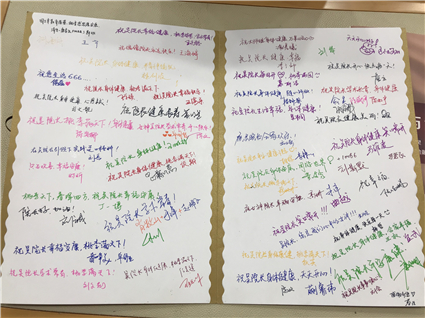 图为:学生代表向吴院长赠送手写祝福卡